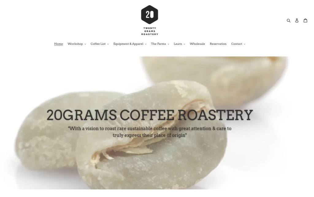 Official website of 20grams Coffee Roastery: https://20gramscoffeeroastery.com/