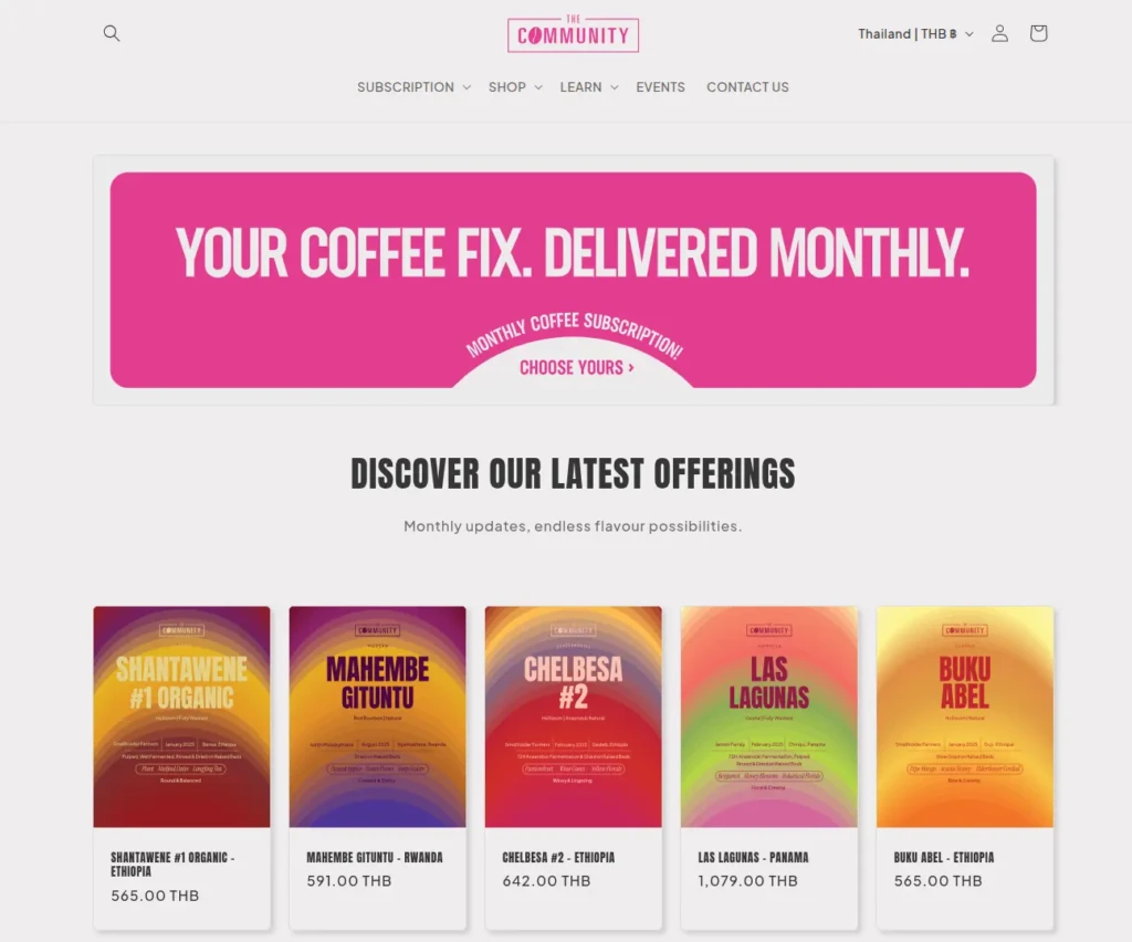 A leading online coffee subscription platform in Singapore. Perk Coffee roasts twice a week and ships within 48 hours. They offer whole beans, ground coffee, drip bags, and pods. Subscriptions are flexible, and they cater to both home users and businesses with bulk options.