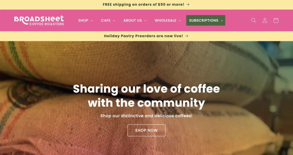 Official website of Broadsheet Coffee Roasters https://broadsheetcoffee.com/