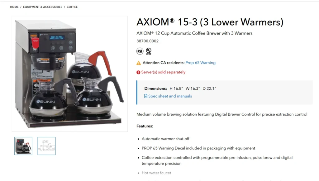 For offices that prefer classic drip coffee served in carafes, the BUNN Axiom 15‑3 delivers consistency and