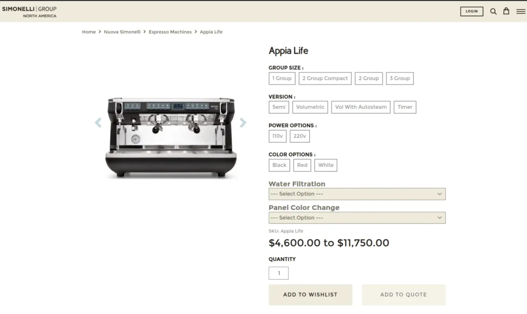 Price: Nuova Simonelli lists the Appia Life between US $4,600 and $11,750, depending on the size and features. The 1-group version is at the lower end of the range, while the 3-group with advanced auto-steam and timer functions sits at the top. These prices are from the Nuova Simonelli USA website, which also offers a 2-year warranty.