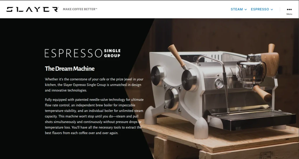 Read more: Details are available at the manufacturer’s site https://slayerespresso.com/product/single-group/.