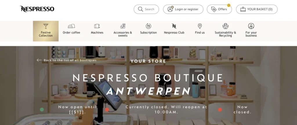 Official website of Nespresso Boutique Antwerp https://www.nespresso.com/be/en/boutique/antwerp