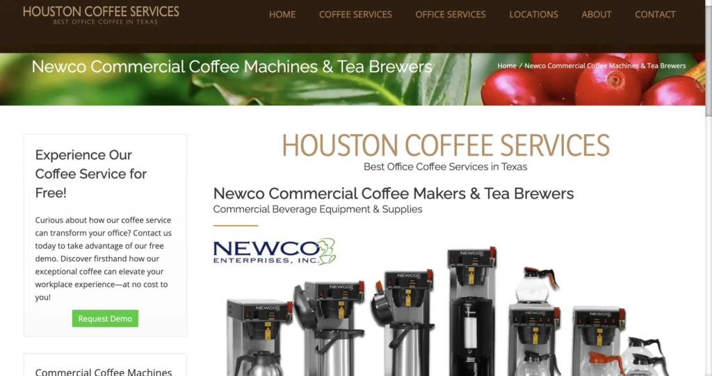 Official website of Houston Coffee Services https://houstoncoffeeservices.com/office-machines/Newco-Commercial-Coffee.html