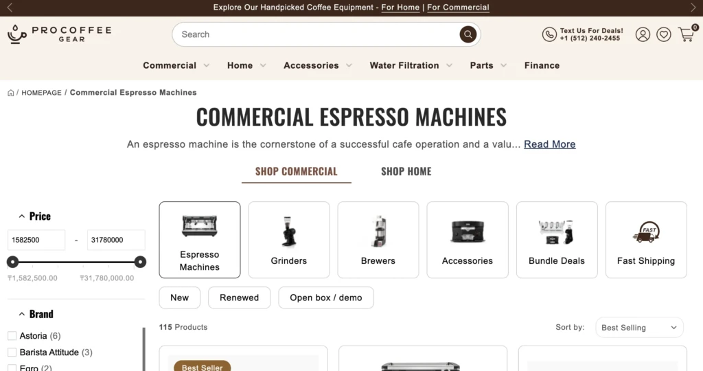 Official website of Pro Coffee Gear https://procoffeegear.com/collections/commercial-espresso-machines