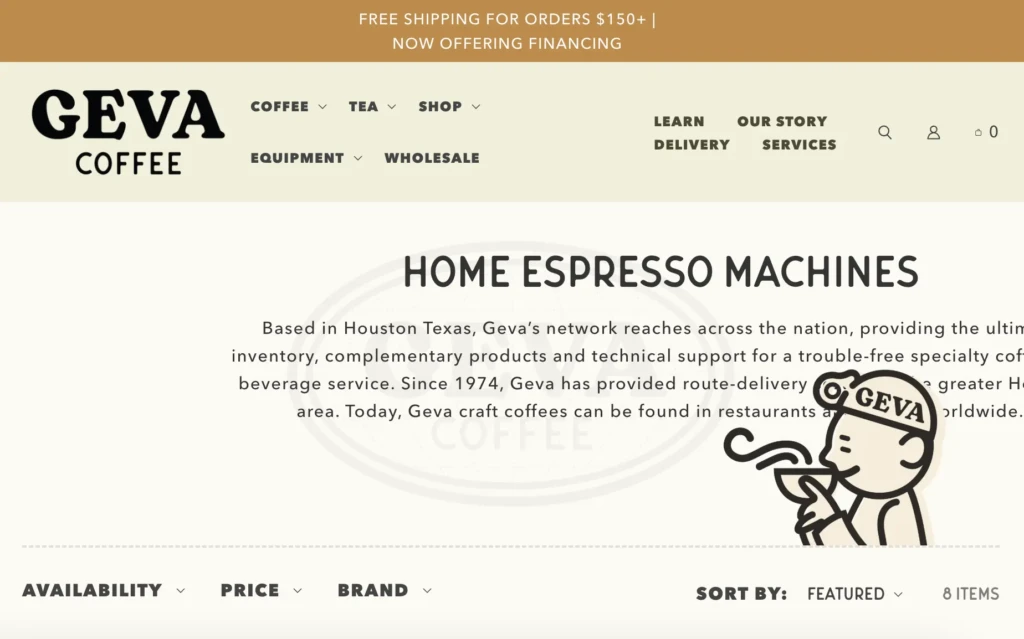 Geva Premium Coffee provides a broad inventory of home espresso machines, supported by technical assistance. Serving Houston and beyond, their network offers complementary products to complete any coffee station.